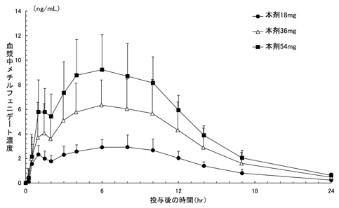 社内資料:安藤隆康:AD/HD患児におけるコンサータ錠の薬物動態の検討(JNS001-JPN-03-1)(2007年10月26日承認、CTD 2.7.6.12)