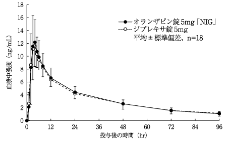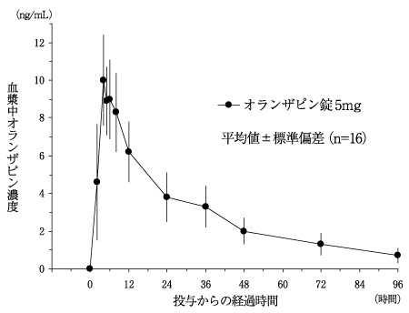 薬物動態(統合失調症患者)(ジプレキサ錠;2000年12月22日承認、申請資料概要 ヘ.3.3.3)