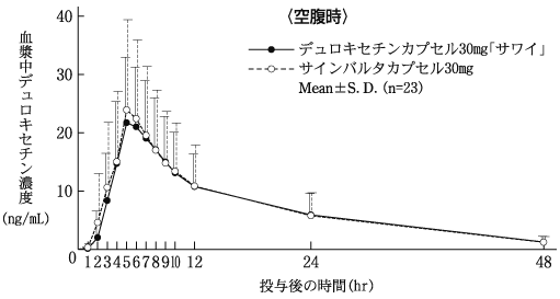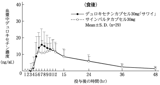 臨床における薬物動態(サインバルタカプセル:2010年1月20日承認、申請資料概要2.7.1.2, 2.7.2.2, 2.7.2.3)