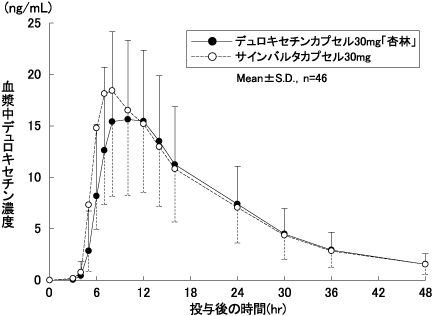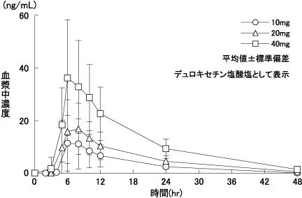 臨床における薬物動態(サインバルタカプセル:2010年1月20日承認、申請資料概要2.7.1.2,2.7.2.2,2.7.2.3)