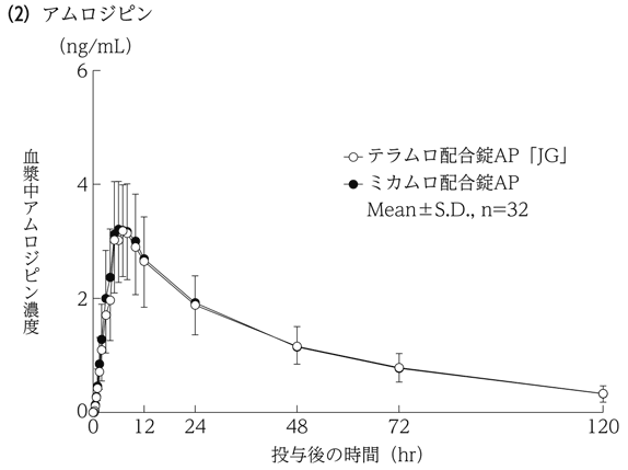 健康成人での薬物動態試験(ミカムロ配合錠:2010年7月23日承認、申請資料概要 2.7.6.2、2.7.2)