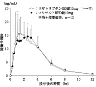 血漿中動態(マクサルトRPD錠:2003年7月17日承認、申請資料概要ヘ.3.(1).1))