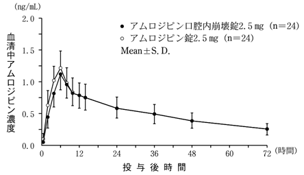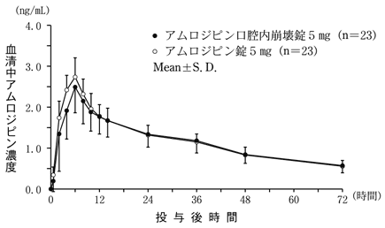社内資料:健康成人におけるアムロジピン10mg単回投与時の安全性と薬物動態
