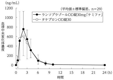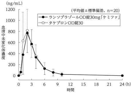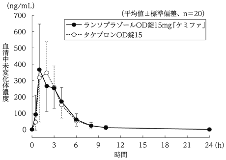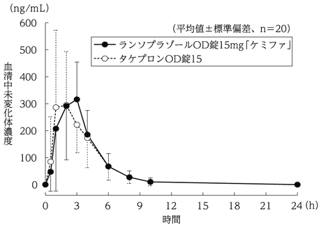 ランソプラゾール・アモキシシリン水和物・クラリスロマイシン併用投与時の薬物動態(タケプロンカプセル等:2000年9月22日承認、申請資料概要へ.3.(1))