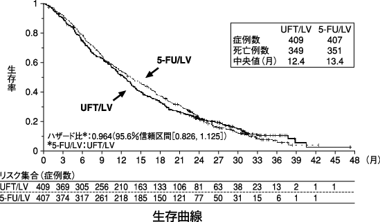 岡部博之:ヒト大腸癌株のヌードマウス皮下移植モデルにおけるUFTの抗腫瘍効果に対するLV併用投与による効果増強の検討(承認年月日:2003年7月17日、申請資料概要ホ.1.(2))