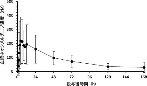 社内資料:非小細胞肺癌患者を対象とした国際共同第I/II相試験(AURA試験)及び国際共同第II相試験(AURA2試験)で認められた体内動態, 2015
