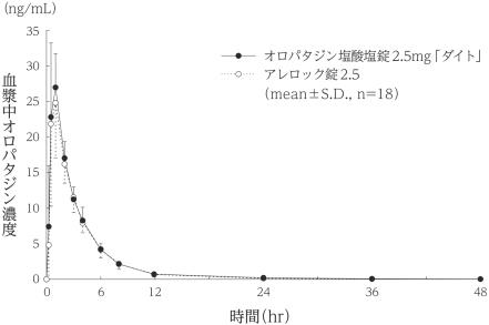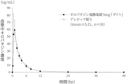 社内資料:生物学的同等性試験(オロパタジン塩酸塩錠2.5mg・5mg「ダイト」)